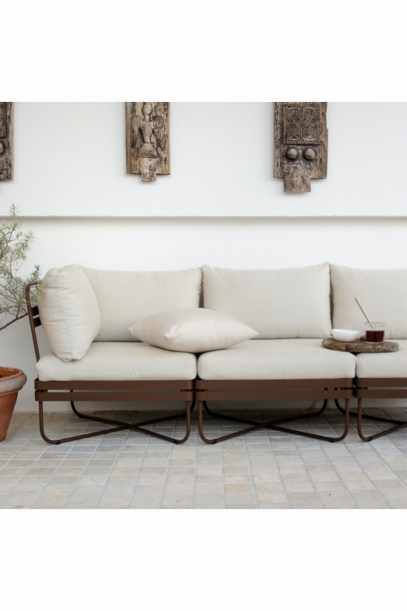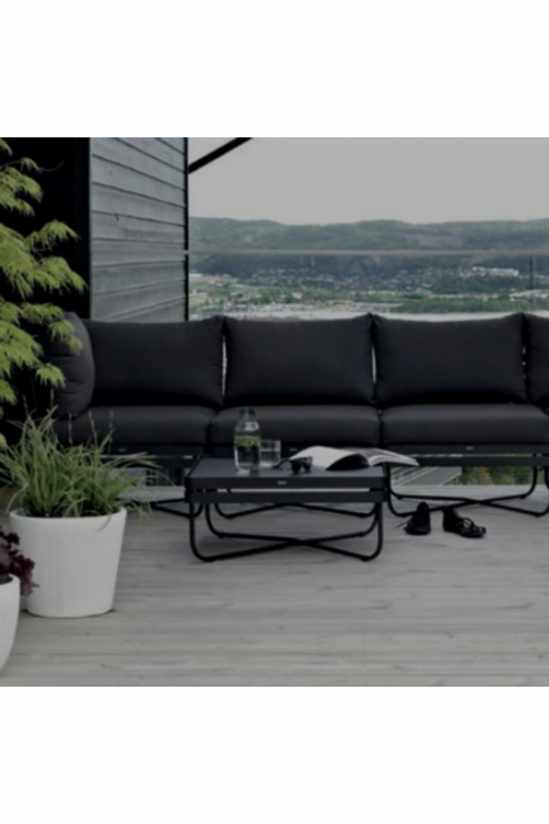 Med en blanding av stramme linjer og myke kurver har Bris modulsofa et tidløst design. Konstruksjonen er laget i solid pulverlakkert stål, men er likevel visuelt lett. De komfortable putene i slitesterkt tekstil tåler sol og vask. Kommer i en rekke farger, og kombinasjon av farge på stålramme og puter kan settes sammen etter kundens ønske.